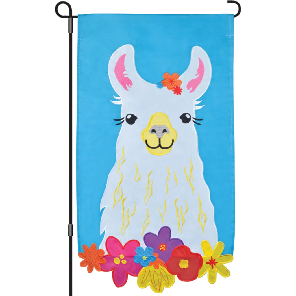 This flag features an extended design with colorful appliqué cutouts, detailed embroidery throughout the flag and fits on standard garden flag poles.