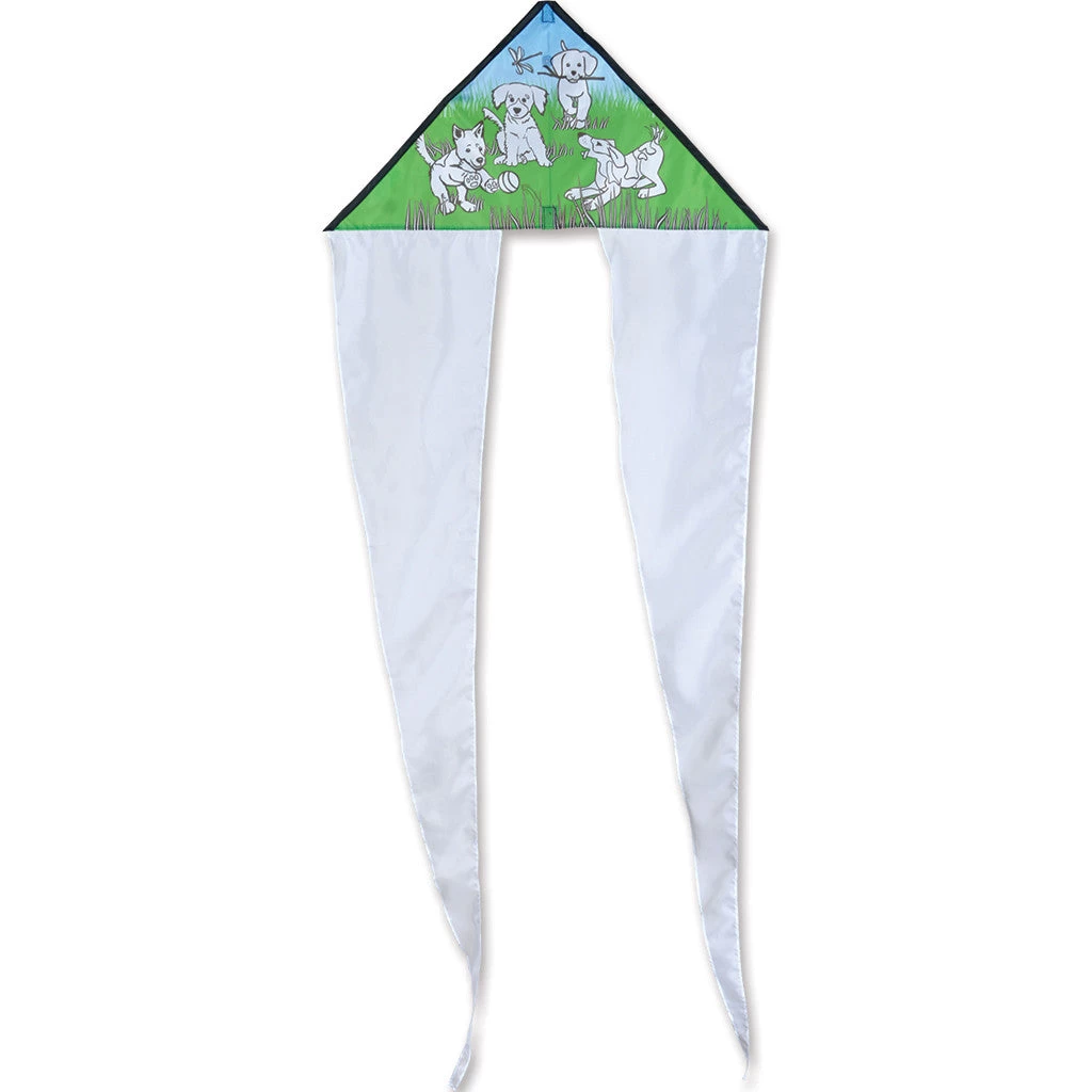 Premier’s Coloring Kites feature bold themes that are enjoyable to color and beautiful to fly. Some designs include background colors that are already pre-printed so anxious artists can finish their masterpieces for fast flying fun. All kites feature long flowing tails that can also be custom colored. Based on one of our most stable designs, artists will be proud to display their works high into the canvas of the sky. A set of eight crayons are provided; colored pencils and most markers will also work for coloring.
